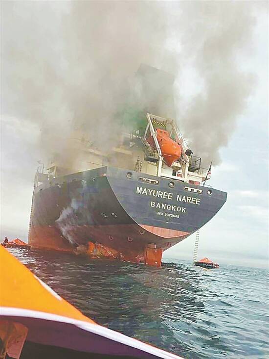 | 一艘泰(tai)国货船正在霍(huo)尔木兹海峡海域遭袭起火 新华社发 |