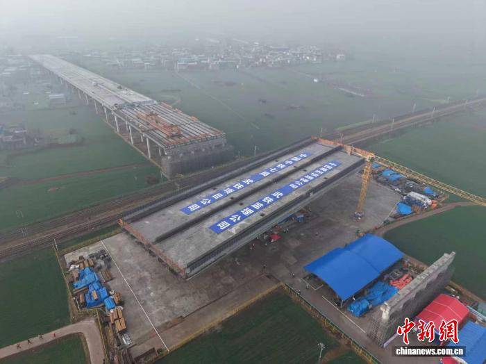 图(tu)为转体中的T构(gou)桥。 我国铁路武汉局团体无限公司供图(tu)