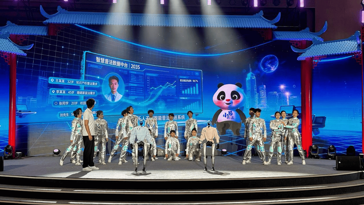 网(wang)络普法IP小蜀与机器人未央、无界(摄影 郭维真(zhen))