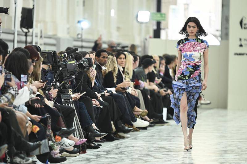 3月18日,模特在西班牙马德里服装周(zhou)上展现设计师(shi)胡安·比达尔设计的新款打扮。