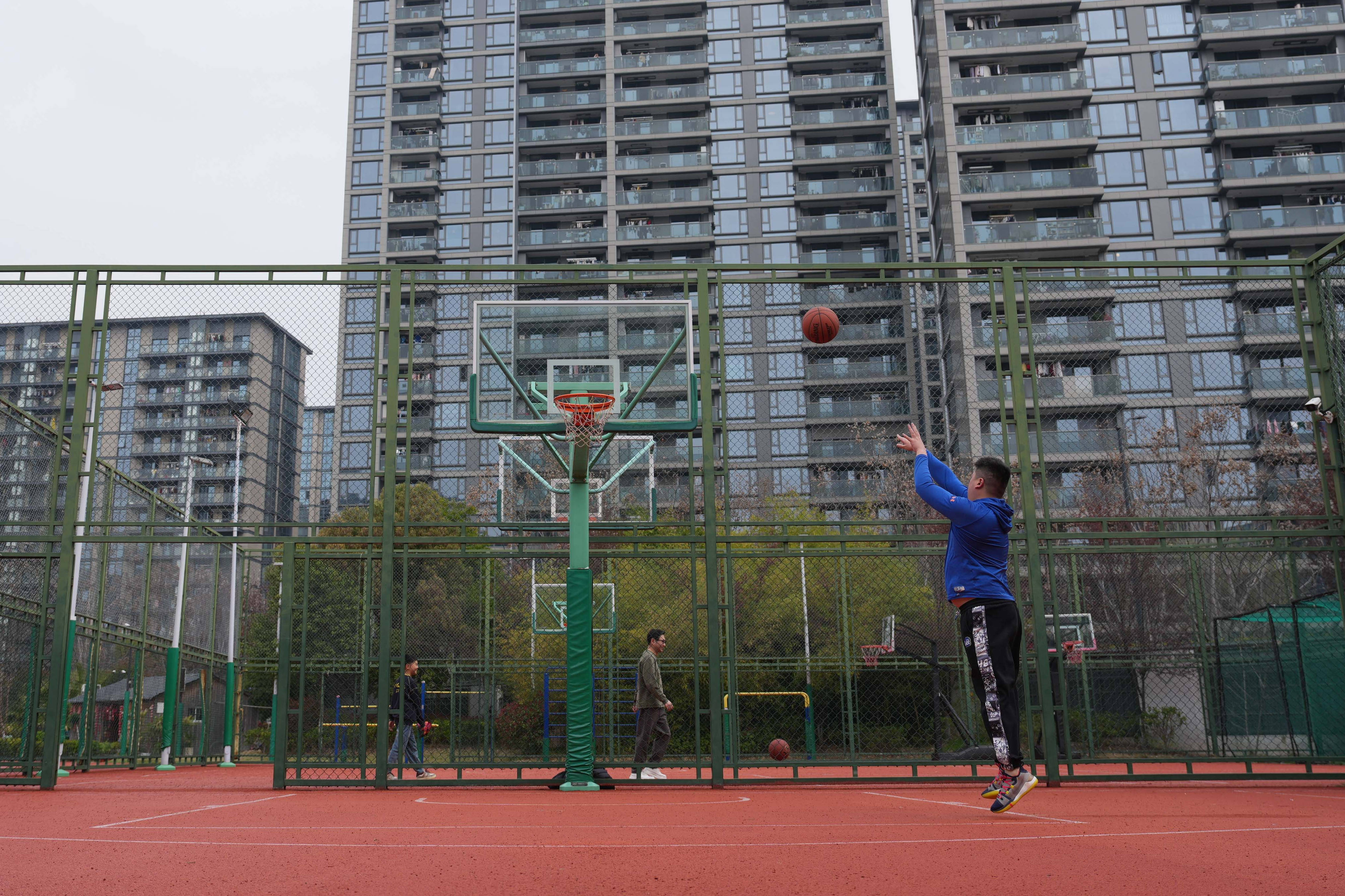 3月21日,市民正在(zai)杭州育才登(deng)云小学运动场地打篮球。浙江杭州积(ji)极推动学校体育设施有序向社(she)会开放,不断织密下层体育服务收集(ji)。 新华(hua)社(she)记者 黄(huang)宗治 摄