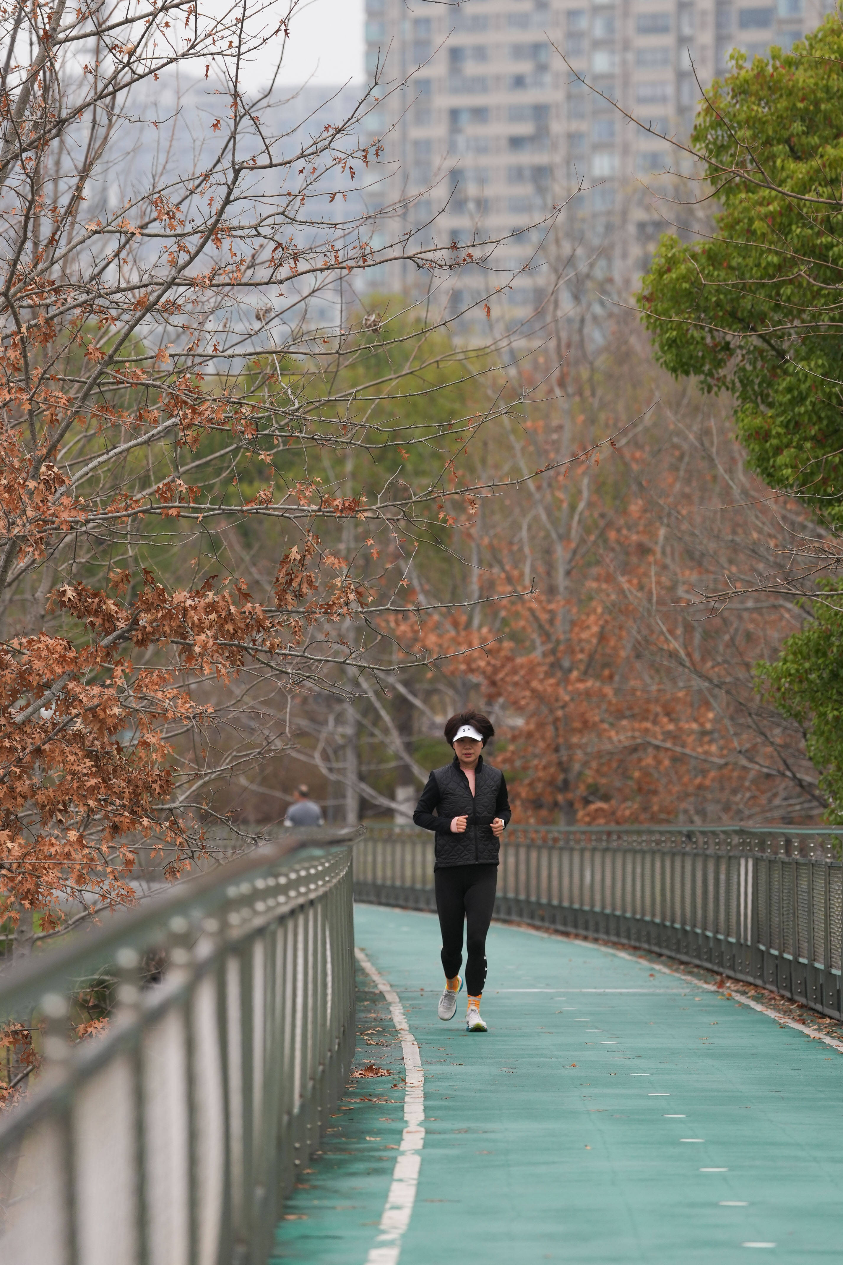 3月21日,市民正在(zai)杭州拱墅(shu)运河体育公园晨跑。 新华(hua)社(she)记者 黄(huang)宗治 摄